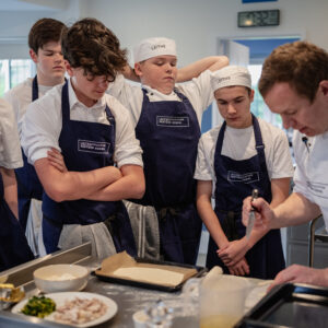 The celebrated restaurateur spent the morning touring the new facilities, chatting with pupils, and joining a cookery lesson where boys were preparing chicken pie. She watched closely as they rolled pastry, checked fillings, and talked enthusiastically about what they had learned.